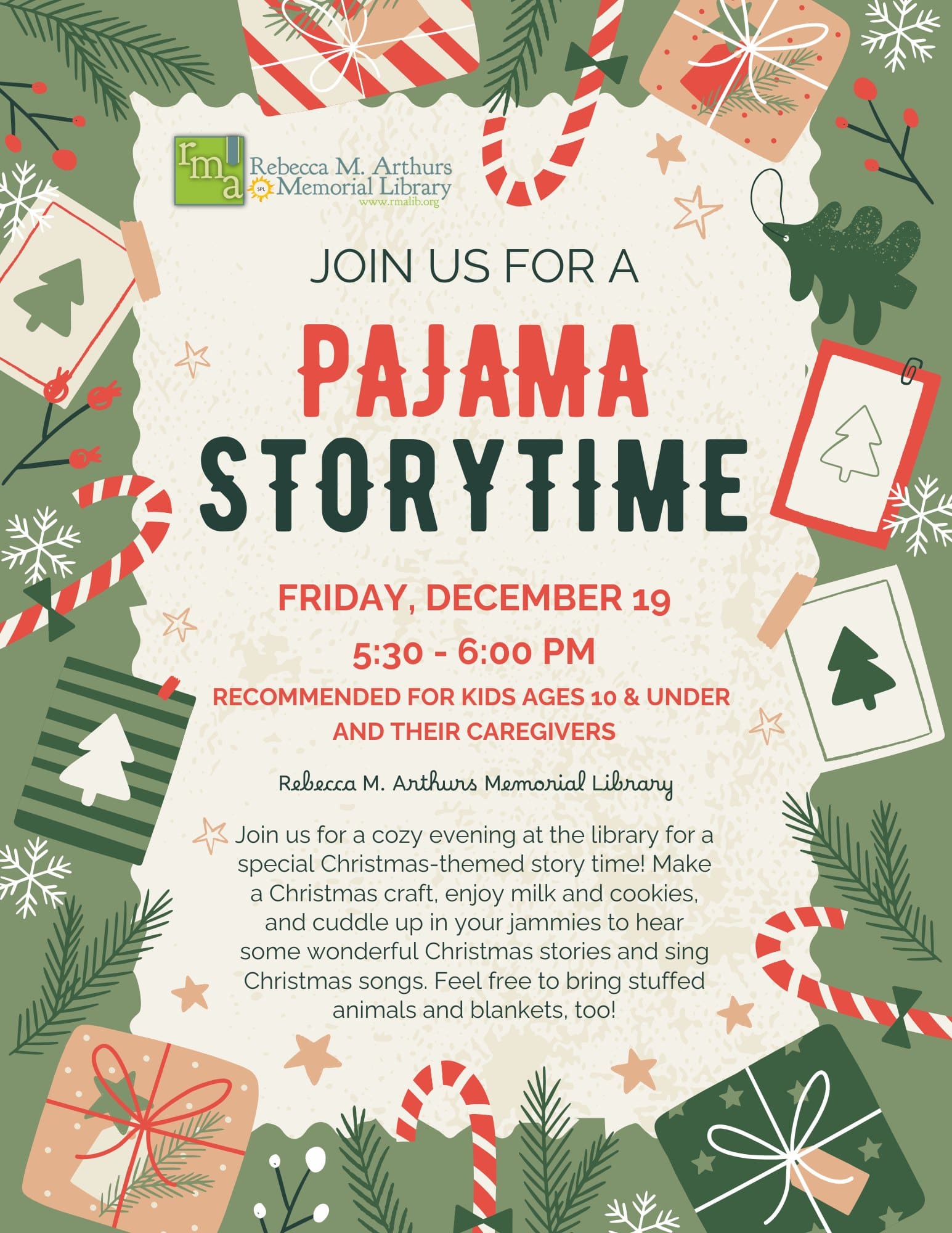 Bring your favorite stuffed animal and your coziest pajamas for crafts and wholsome Holiday fun.
