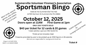 Summerville Firemen’s Association is hosting their Sportsman Bingo event at the Summerville Fire Hall on October 12th! Be sure to get your tickets now!