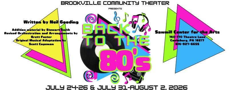 "Back to the 80s" Musical July 24-26 and August 2 Location: Sawmill Center for the Arts Organized: Brookville Community Theater Back to the 80s is a high-energy jukebox musical that follows a 30-something Corey Palmer as he reminisces about his 1985 senior year, dealing with crushes, bullies, and friendships. It is a nostalgic, comedic, and colorful tribute to 1980s pop culture.