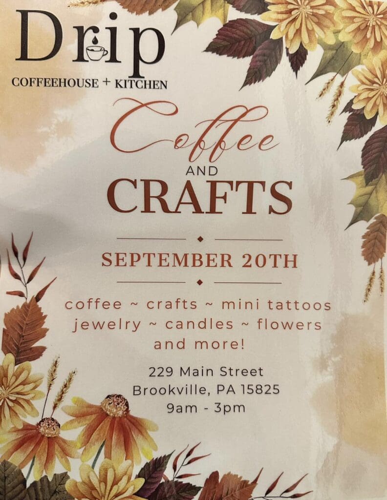 Stop by Drip Coffeehouse + Kitchen and browse the variety of vendors including mini tattoos, jewelry, candles, flowers, and more!