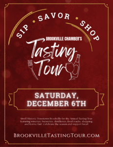 The Brookville Chamber Tasting Tour, formerly known as the Wine Walk, is an annual event hosted by the Brookville Area Chamber of Commerce in Historic Downtown Brookville. This event has been a local favorite since 2011 and offers a unique way to celebrate the winter holiday season.